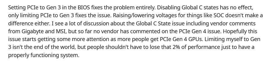 May be it was after this realization Gigabyte went ahead and split the PCIe Gen 4 "enable" option between the PCIe x16 slot and the m.2 slot so that you can force the PCIe x16 slot to run on PCIe Gen 3 loosing minimal GPU performance while still maintaining the Gen 4 capability of the M.2 slot.