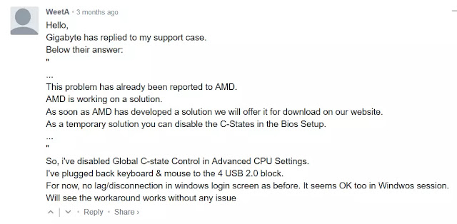 And there were more posts and threads on Gigabyte's own forums for example this one: USB Fails and Network Drop on B550 Aorus Pro. Yes I know this one is from September, but you get the point, these issues are not something that started in October or November they have been around for more than 6 months now and AMD have not even publicly acknowledge that this issues.